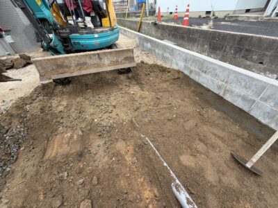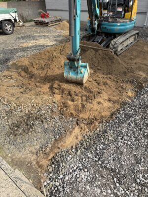 鋤取り(すきとり)と砕石入れ作業中の写真でした😊