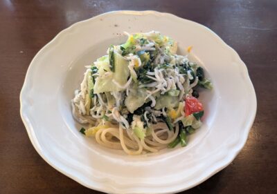 【 和歌山県産しらすとお野菜のペペロンチーノ 】