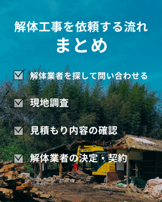 解体費用の算出や具体的な工期などは、業者が現地を訪問し、調査しなければ明確になりません。必ず、現地調査をしてもらいましょう。